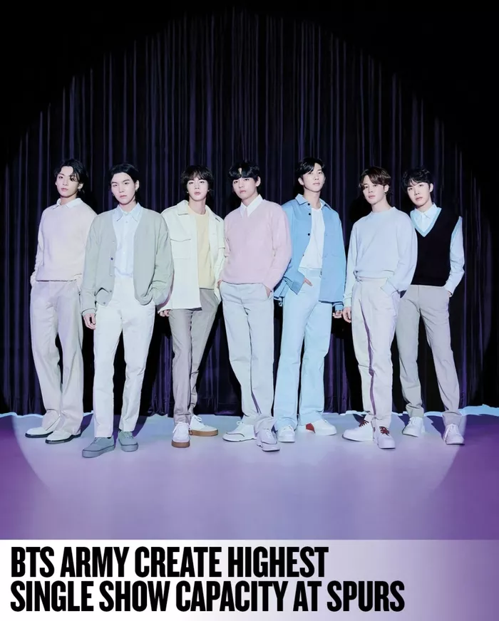 Nhà tổ chức hòa nhạc toàn cầu, Live Nation UK, chính thức thông báo trên mạng xã hội rằng ARMY, cộng đồng fan trung thành của BTS, đã đạt được sức chứa chỗ ngồi cao nhất cho một sự kiện duy nhất từng được ghi nhận tại Sân vận động Tottenham Hotspur. Thành tựu mang tính bước ngoặt này diễn ra trước các buổi hòa nhạc solo rất được mong đợi của BTS vào ngày 6 và 7 tháng 7, nơi khoảng 120.000 người hâm mộ dự kiến sẽ lấp đầy sân vận động bằng năng lượng sôi nổi của họ.