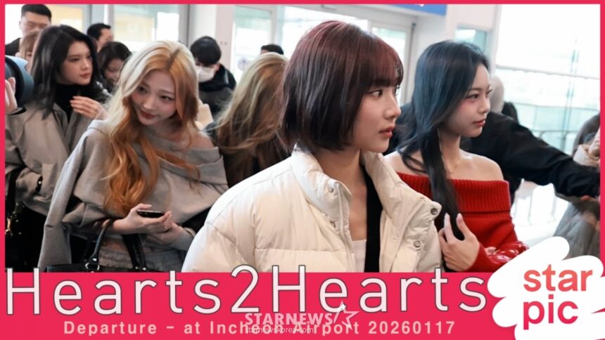 Vào sáng ngày 17 tháng 1 năm 2026, tám thành viên của Hearts2Hearts—Carmen, Jiwoo, Yuha, Stella, JooEun, Eina, Ian, và YeOn—đã xuất hiện tại Sân bay Quốc tế Incheon với thần thái chuyên nghiệp và đầy hào hứng. Điểm đến của nhóm: Thượng Hải, Trung Quốc, cho một sự kiện hoành tráng, khẳng định sức hút quốc tế đang lên như diều gặp gió của nhóm.