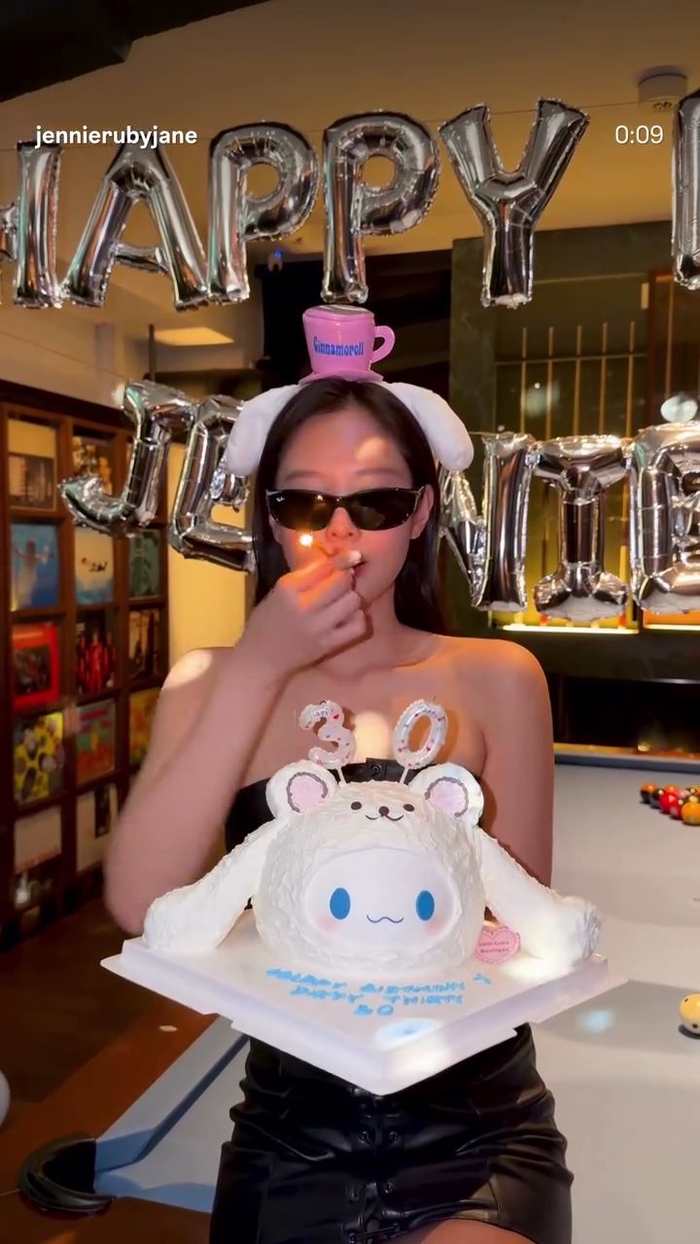 Ngày 16/1 vừa rồi á, để kỷ niệm sinh nhật lần thứ 30, Jennie quăng lên mạng một đoạn video ngắn cho cả triệu người theo dõi. Trong clip, bả cầm cái bánh kem, đeo kính râm ‘cool ngầu’, còn đội thêm cái bờm tóc nhân vật hoạt hình cho nó ‘cute’. Mà điểm nhấn á hả: bả ngậm cây nến sinh nhật dài thòn trong miệng, lấy cái bật lửa khò đốt, xong mới cắm lên bánh. Thổi nến xong, khói bay nghi ngút về phía camera, rồi Jennie cười tươi rói, tháo kính râm ra.