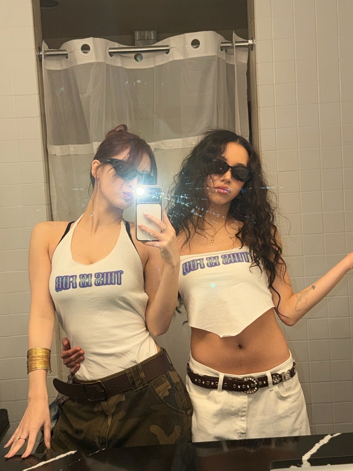 Thêm một tầng thú vị cho bài đăng, Momo còn chia sẻ những khoảnh khắc đáng yêu bên thành viên TWICE, Chaeyoung. Cả hai đã thể hiện “phản ứng hóa học” bùng nổ, tạo dáng tinh nghịch nhưng không kém phần sành điệu với phong cách áo crop top tương tự, tỏa ra sức hút khó cưỡng.