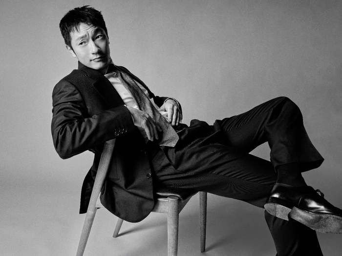 Bức ảnh đầu tiên, một shot đen trắng đầy ấn tượng, ghi lại khoảnh khắc Son Suk-ku tựa lưng vào ghế trong bộ vest lịch lãm. Ánh mắt đặc trưng vừa lãng đãng vừa sắc bén toát lên vẻ cuốn hút đầy tự nhiên, định nghĩa hoàn hảo cho sức hút tinh tế. Đây là một ánh nhìn hoàn hảo nắm bắt được cường độ thu hút mà anh mang đến cho các nhân vật, ngay cả trong một khung hình tĩnh.